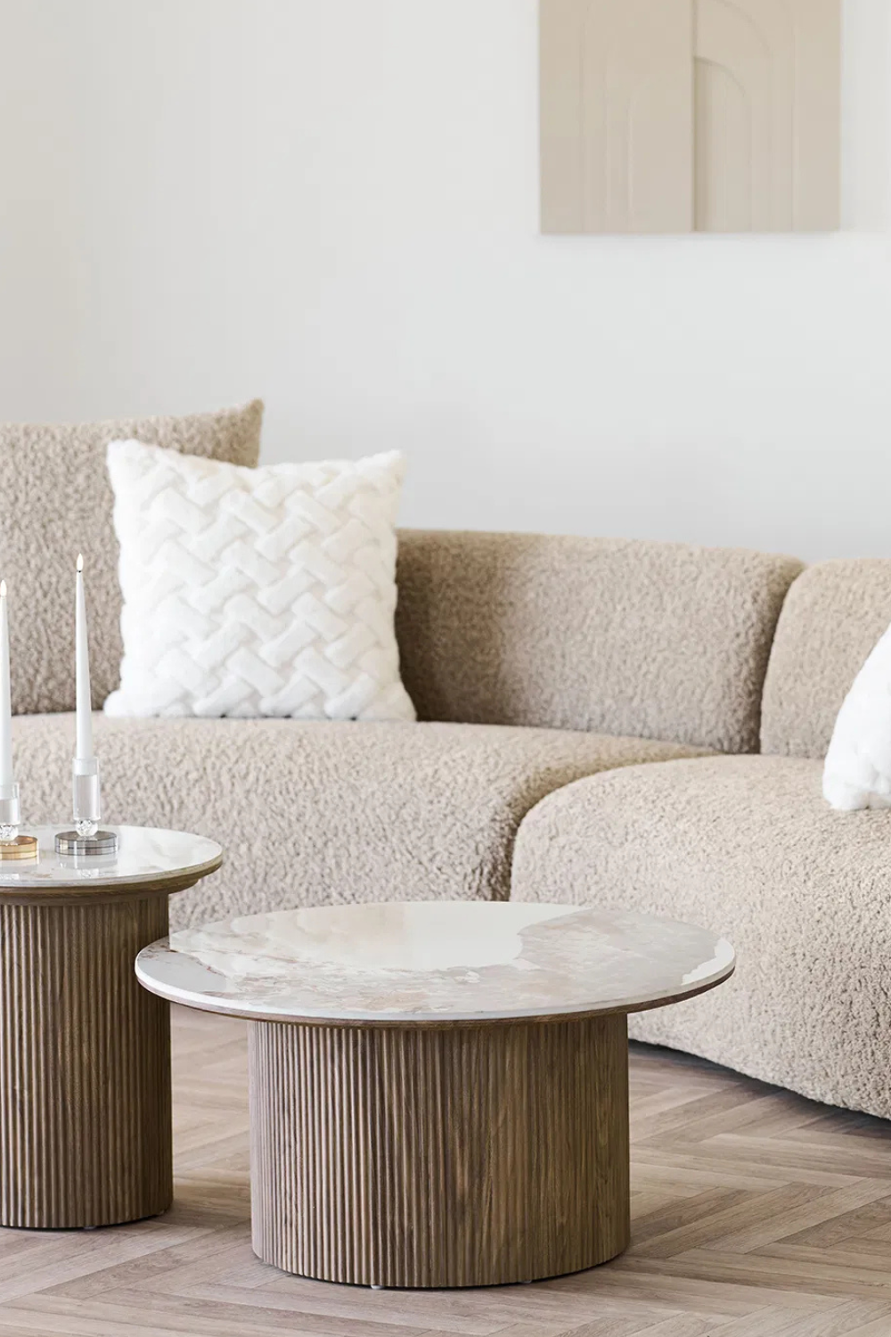 Athens-spisebordet kombinerer skandinavisk minimalisme med bæredygtig funktionalitet. Den runde bordplade i hvid keramik giver et rent og stilfuldt indtryk, mens det mørkebrune MDF-stel med dekorativt papir tilfører varme og karakter. Med en diameter på 120 cm og en højde på 76 cm er bordet perfekt til små og mellemstore spisepladser. Den keramiske overflade er både holdbar og nem at rengøre, hvilket gør bordet ideelt til både hverdagsbrug og festlige lejligheder.