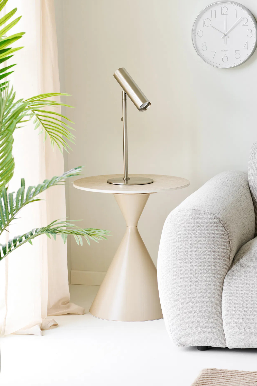En nätt bordslampa i borstad stål med riktbart ljus. Den avskalade formen ger ett precist och stämningsfullt uttryck.