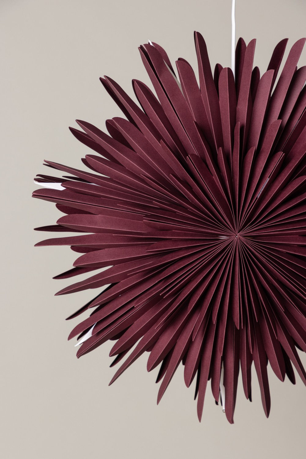 Create a cozy and homely atmosphere with the Sälen ceiling light - Perfect for autumn and Christmas! This beautiful dark red paper star will spread a warm and cozy light in your room, making it perfect for both the beautiful color changes of autumn and the festive festivities of Christmas. Complement your decor in a stunning and charming way! The Sälen ceiling light is available in several different sizes to suit your needs and the dimensions of your room. With its discreet white cord, the lamp blends elegantly into your decor and becomes a stylish detail. It is easy to install and will quickly create an atmospheric feeling in your home. The warm dark red color also contributes to a soft and pleasant lighting that makes you feel relaxed and joyful. Dimensions: 60cm.