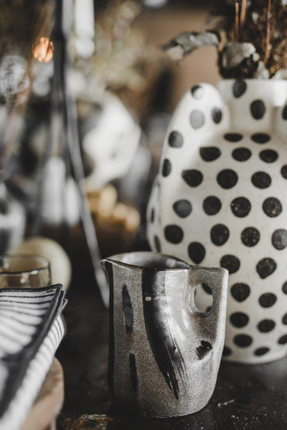 Upptäck Tulip-kannan, en elegant och tidlös serveringsdetalj som kombinerar det bästa av minimalistisk design och naturlig skönhet. Tillverkad av stengods och täckt med en reaktiv glasyr har varje kanna en unik finish. Den reaktiva glasyren skapar subtila färgvariationer som gör varje exemplar helt unikt och förvandlar varje kanna till ett litet konstverk. Ingen kanna är den andra lik – varje detalj och varje färgskiftning är resultatet av hantverk, vilket ger den en livfull och personlig känsla. Den minimalistiska designen lyfter fram stengodsets naturliga skönhet och tillför en stilren, tidlös touch till varje måltid. Med sina subtilt rundade former och harmoniska linjer är Tulip både en vacker och funktionell detalj, perfekt för alla tillfällen.