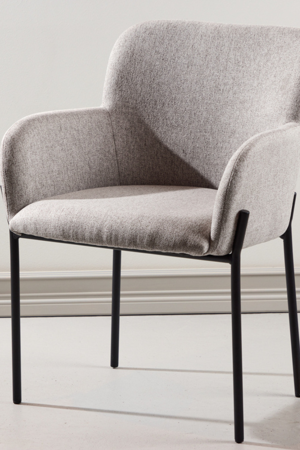 Esittelyssä Vätö, ruokailutuoli, jossa yhdistyvät tyylikäs muotoilu ja mukava toiminta. Mustan teräsrungon ja pehmeän beigen kangasverhoilun ansiosta Vätö tarjoaa modernin ja tyylikkään kontrastin, joka sopii sekä nykyaikaiseen että klassiseen sisustukseen. Tuoli on suunniteltu tarjoamaan korkeaa istuinmukavuutta - täydellinen pitkiin illallisiin ja rentoihin keskusteluihin pöydän ääressä. Hillityn väriyhdistelmän ja minimalistisen muodon ansiosta Vätö on helppo sovittaa erilaisiin ruokapöytiin ja ympäristöihin.