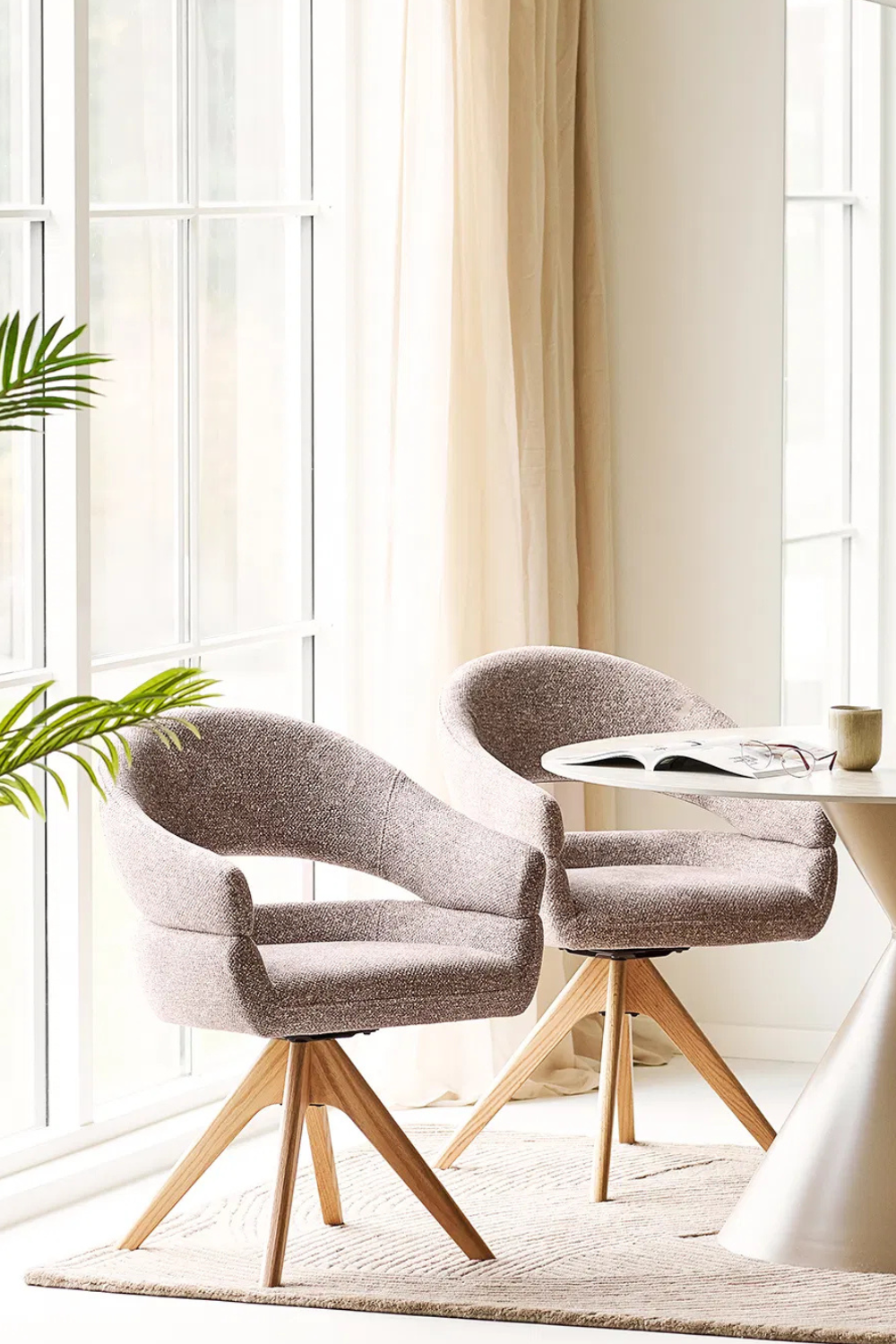 Bekväm och stilren matstol med 360° svängfunktion och naturliga ekben. Perfekt för både matbord och arbetsyta hemma. Enkel att placera och ger ett modernt och varmt intryck i rummet.