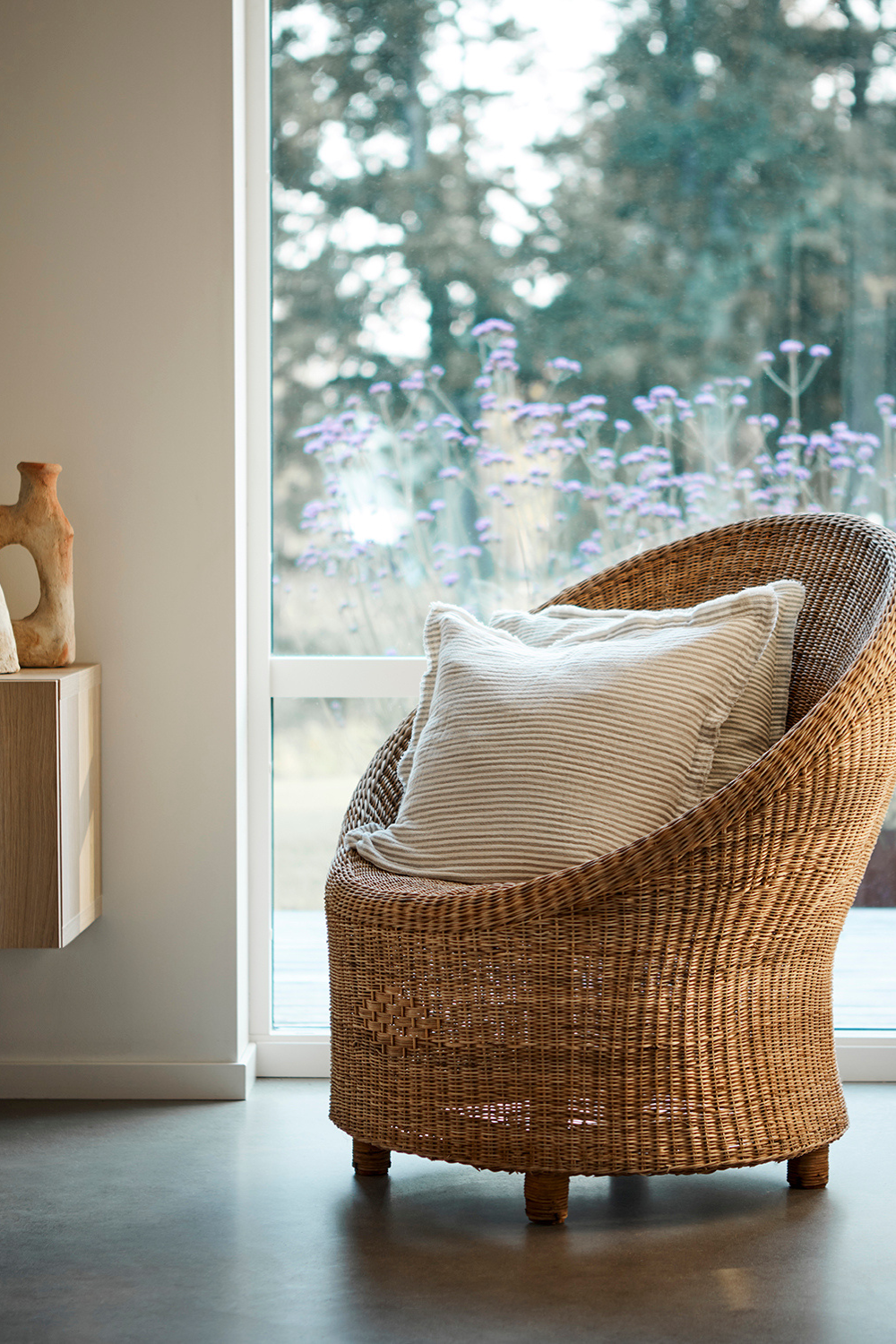Vacker fåtölj i serien Tribe. Varje exemplar är unikt och flätat för hand av hantverkare på den afrikanska landsbygden. Patineras av väder och vind, ej behandlade för att var ute i fukt och regn. Förvara under skydd eller inomhus vid fuktigt väder. Nyansen kan variera.