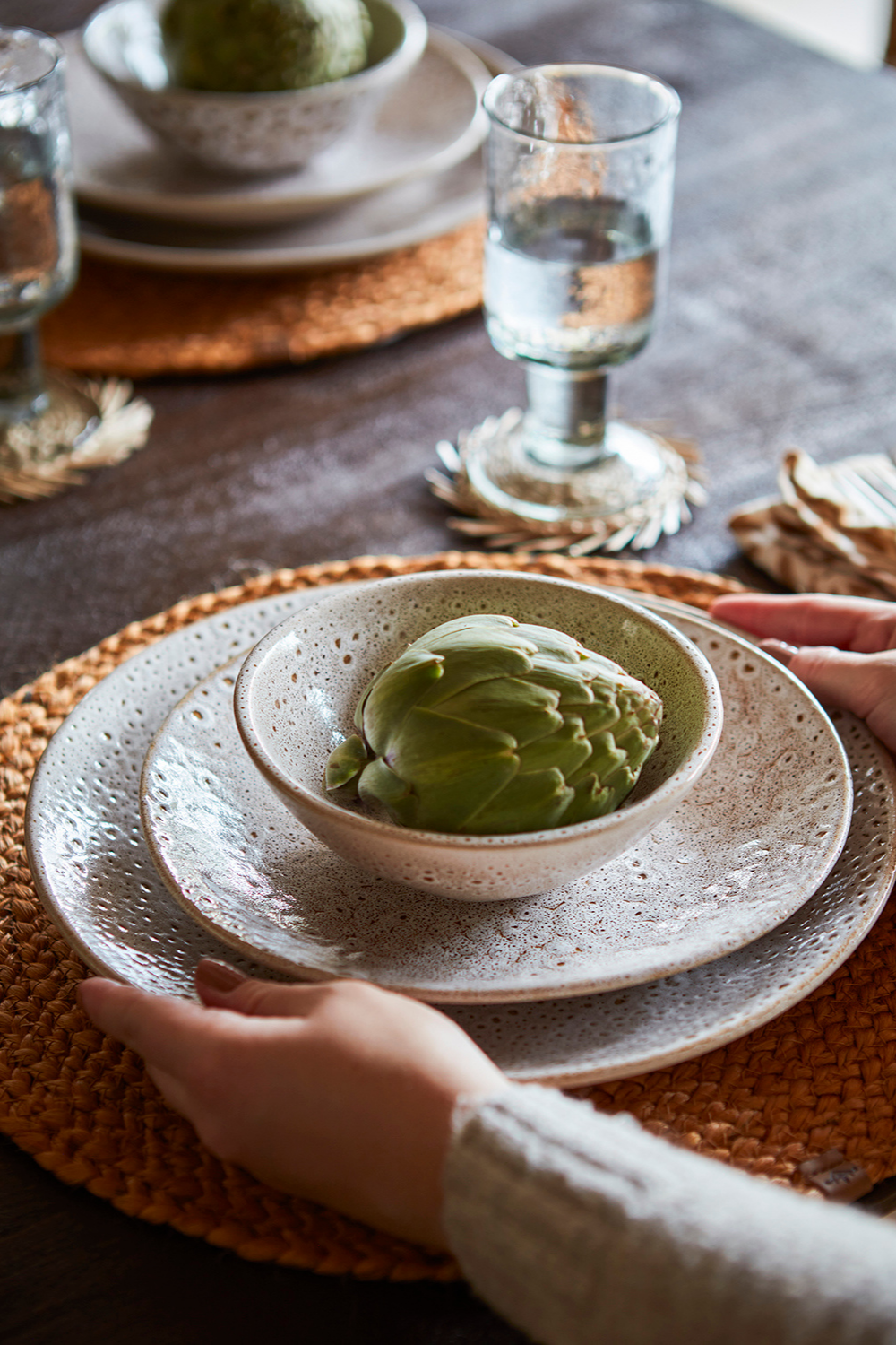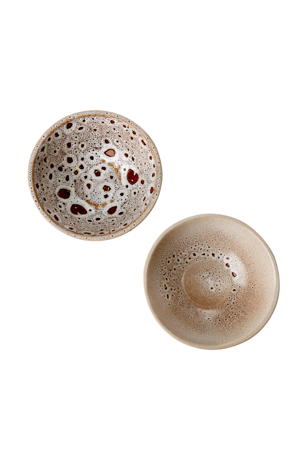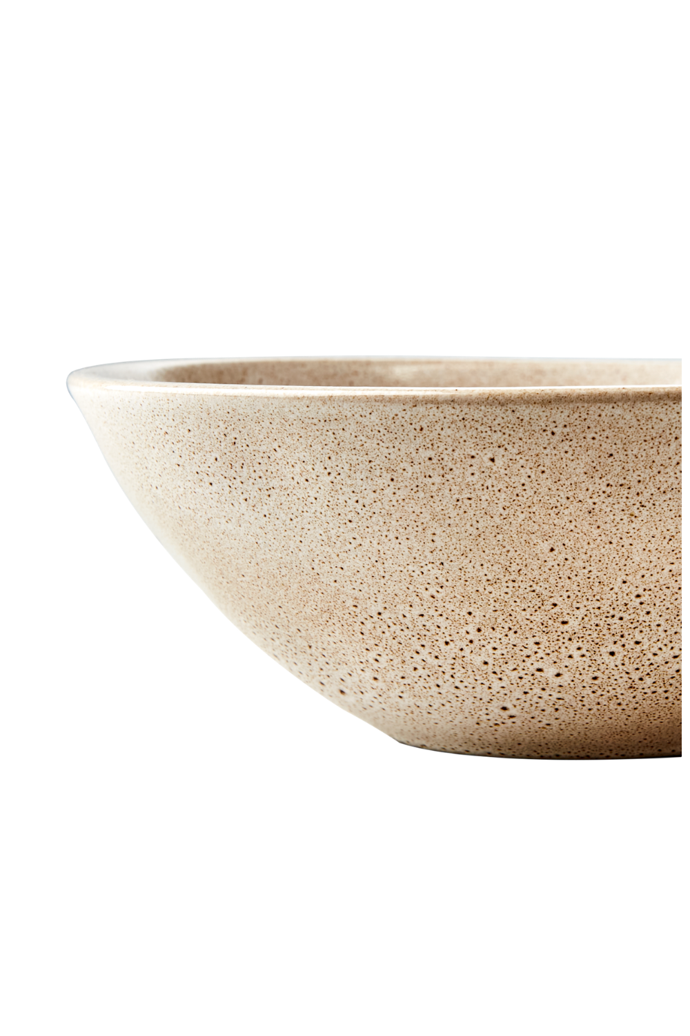 Annabelle skålar i 4-pack i stengods som levereras i varierande färgtoner och mönster. Variationerna uppstår genom den naturliga reaktionen som sker vid glasyrbränningen, vilket gör varje tallrik unik. Skillnaderna är en självklar del av produktfamiljens charm.