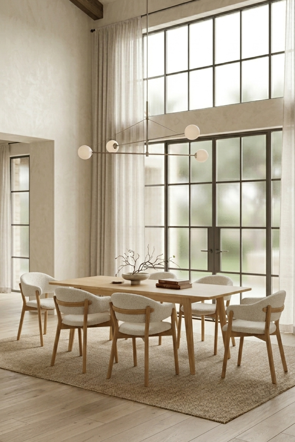 Darwin & Dunkirk matgrupp kännetecknas av en varm och modern design där ljust trä möter mjuka, omslutande former. Det utdragbara bordet ger flexibilitet för olika tillfällen, medan Dunkirk-stolarna med stoppad sits och rygg erbjuder hög komfort och en elegant känsla. En harmonisk helhet som passar perfekt för både vardag och middagar. Setet innehåller 1 bord och 6 stolar