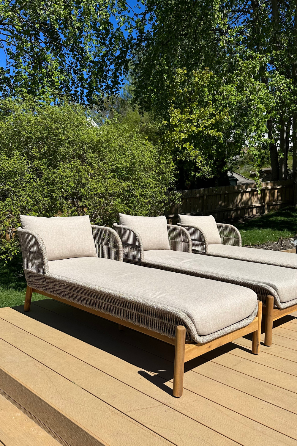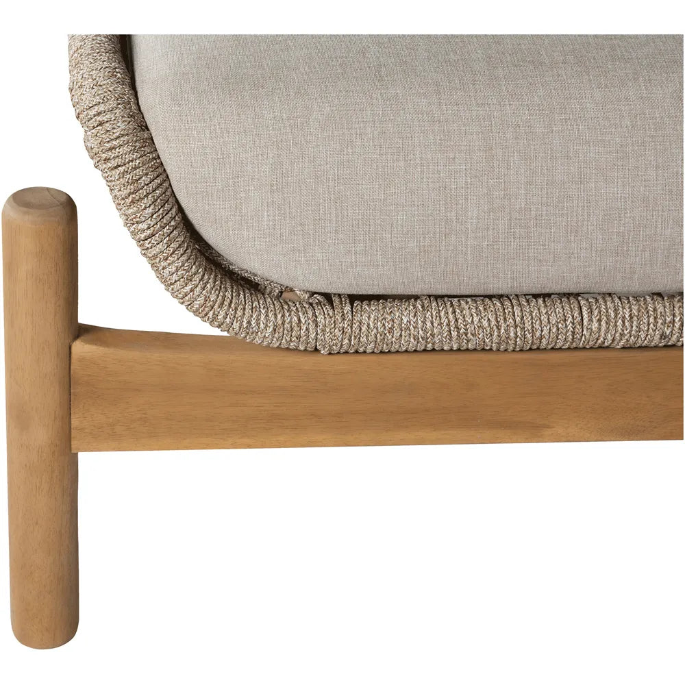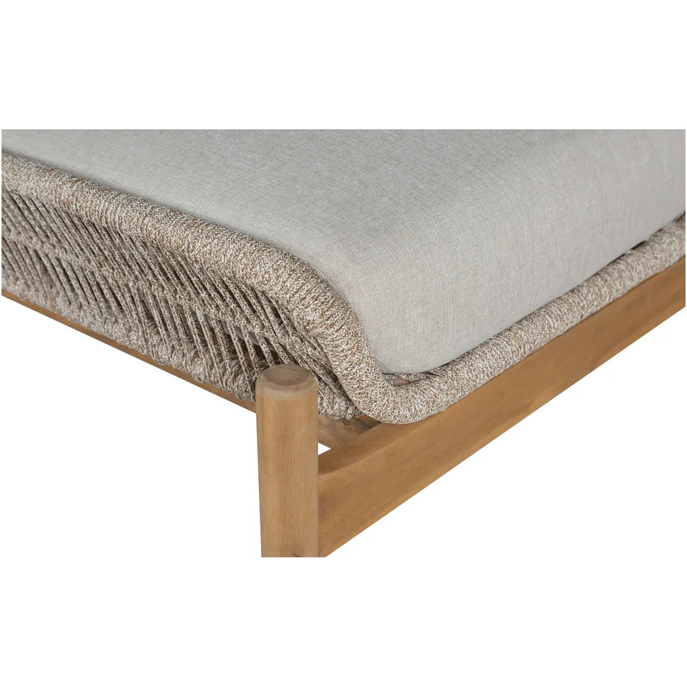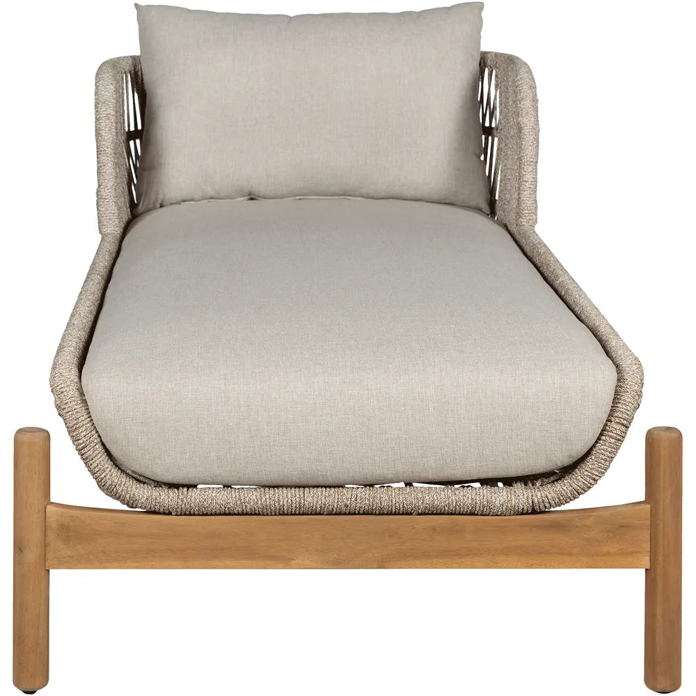 Terracina solsäng tillverkad i slitstarkt akaciaträ. Med sin moderna design och vackra repflätning, tillsammans med de beigefärgade sittdynorna, kommer detta solsäng att bli en given stilren och inbjudande möbel på din uteplats.