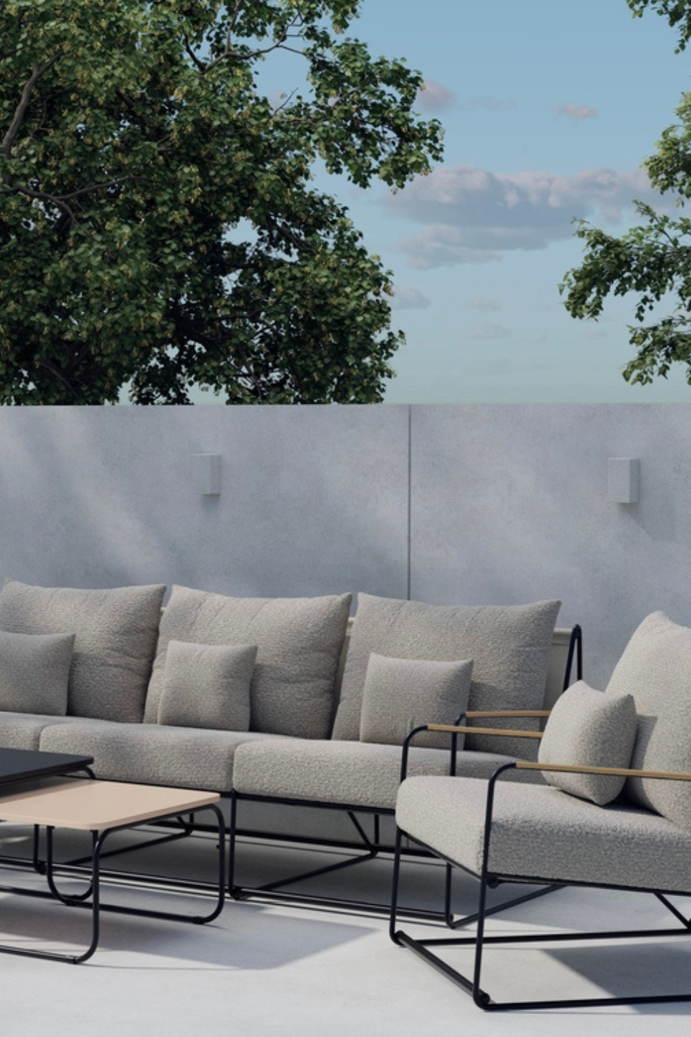 Palazzo soffgrupp är en elegant och rymlig möbelgrupp med svart stomme och mjuka beiga dynor. Gruppen består av en tresitssoffa, två fåtöljer samt två matchande bord som skapar en komplett och inbjudande loungemiljö. Den stilrena designen med raka linjer och kontrasten mellan den mörka stommen och de ljusa dynorna ger ett modernt uttryck som passar både altanen, trädgården och uterummet. Palazzo soffgrupp är det perfekta valet för dig som vill ha en kombination av komfort, kvalitet och tidlös design.