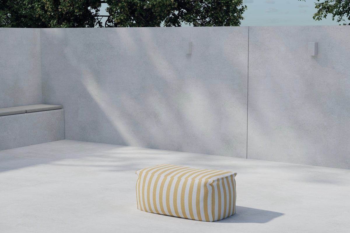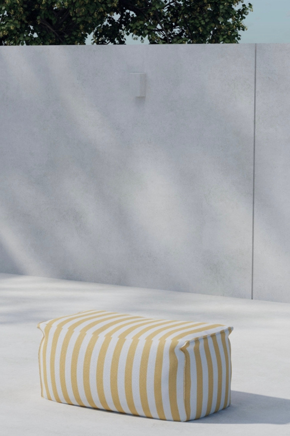 Redang är den perfekta ottomanen för dig som vill kombinera komfort med en lekfull design. Med sina randiga textilier i fräscht gult ger den ett soligt och modernt intryck som lyfter både vardagsrum, uteplats eller loungehörna. Den generösa stoppningen formar sig efter kroppen och gör ottomanen lika skön att använda som fotpall, extra sittplats eller tillsammans med en loungestol för maximal avslappning.Med Redang ottoman skapar du enkelt en inbjudande och avslappnad miljö där du kan njuta av både vardag och lediga stunder.