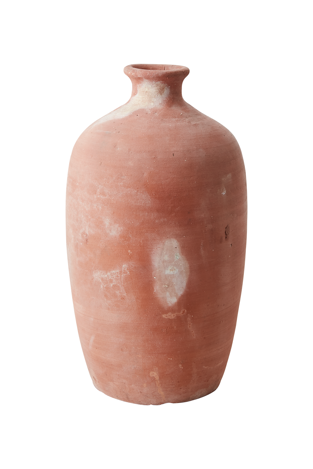 Dekorativ handgjord urna i naturfärgad lera med mjukt rundad form och smal hals. Den räfflade ytan ger ett levande, hantverksmässigt uttryck och varje exemplar är unikt – färg, form och storlek kan variera. Tillverkad i ett poröst material, använd därför vattentäta fat för att undvika fläckar. Färg, form och storlek kan variera